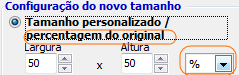 2.1 Nos botões de selecção redondos terá de optar por um deles. No primeiro pode optar por definir o tamanho de um modo personalizado